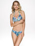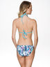 Роскошный раздельный купальник оригинального дизайна. Плавки низкой посадки. Лиф с формованными чашками с эффектом пуш-ап, с завязками сзади и с завязками на шею. Яркий пестрый принт, а так же бархатная фактура ткани купальника позволят его обладательнице выглядеть солидно, в то же время, ярко и очаровательно. На модели размер 75В.