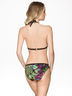 Роскошный раздельный купальник оригинального дизайна. Плавки низкой посадки интересной конструкции. Лиф с формованными чашками с эффектом пуш-ап, с металлической застежкой сзади и с завязками на шее. Яркая расцветка на купальнике словно манит в жаркие страны, к дикой природе отдохнуть от рутины. Обладательница этого купальника будет не только шикарно выглядеть, но и иметь всегда приподнятое, мечтательное настроение. На модели размер 75В.