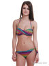 Бюстгальтер-бандо перекручен спереди. Бретель-петля. Плавки с боковыми завязками. Подходит для размера чашек В и С.