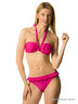 Раздельный купальник с отделкой рюшами. Бюстгальтер-бандо на косточках, чашечки на подкладке. V-образный вырез, бретели завязываются на шее. Плавки с оборкой по поясу.