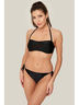 Бюстгальтер имеет мягкую чашку-бандо с подкладкой телесного цвета и фигурной вставкой из эластичной сетки.