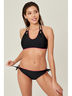 Бюстгальтер имеет мягкую чашку со съёмными формованными вкладышами и завязки на спинке.