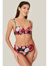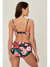 Раздельный купальник из эластичного материала с ярким цветочным принтом.