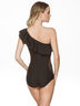 Слитный купальник романтического стиля не оставит равнодушной ни одну модницу разных форм. Боковые вставки из прозрачной ткани визуально вытягивают фигуру и подчеркивают талию, а формованные чашки и утягивающая резинка приподнимает и преображает грудь. Ассиметрично расположенные воланы придают образу оригинальности и легкости. На модели размер 75В.