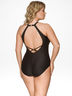Шикарный слитный купальник с формованными чашками-вкладышами, без каркасов. Оригинальный дизайн и конструкция делают эту модель не только удобной, но и придает фигуре стройности и притягательности. Купальник выполнен из плотной итальянской ткани, быстро сохнет и не вытягивается со временем. Модель отлично подойдет обладательницам пышных форм. На модели размер 80Е.