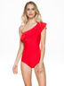 Слитный купальник романтического стиля не оставит равнодушной ни одну модницу разных форм. Боковые вставки из прозрачной ткани визуально вытягивают фигуру и подчеркивают талию, а формованные чашки и утягивающая резинка приподнимает и преображает грудь. Ассиметрично расположенные воланы придают образу оригинальности и легкости. На модели размер 75В.