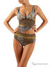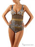 Изысканный купальник-танкини для дам пышных форм . Топ на бретелях с треугольными чашками размера С из тонкого поролона и эффектным вырезом по линии декольте. Скульптурная форма усилена правильным анатомическим кроем и эластичной сеткой. Классические плавки высокой посадки с широким боком. Купальник выполнен из итальянской ткани Eurojersey, принтованной красочными африканскими узорами.