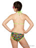 Купальник-трикини для девочек подросткового возраста. Бюст – фиксированные треугольники с контрастными завязками на шею и застёжкой на спине – соединён фигурной деталью с плавками комфортной посадки. Оригинальный декор в виде колец, цветная подкладка (новое решение) и модный принт "Пляжная вечеринка" производят незабываемое впечатление