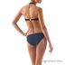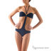 Элегантное трикини с плотной чашкой-бандо. Бюст украшен металлическими кольцами золотого цвета.