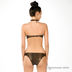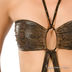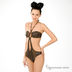 Купальник монокини из эластичного материала, имитирующего кожу рептилии. Есть подкладка. Бюстгальтер бендо. Тонкие съемные уплотнители в чашечках. Застегивается сзади и завязывается на шее.