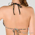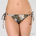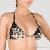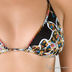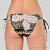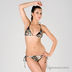 Купальник-бикини из быстросохнущей ткани с пестрым принтом. Лиф с завязками на шее и спине. Мягкие треугольные чашечки с возможностью регулировки их расположения и ширины. Плавки на боковых завязках. Декор: принт и разноцветный бисер.