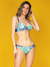 Необыкновенное цветовое исполнение в сочетании с выразительным геометрическим принтом в стиле пэчворк. Бюстгальтер с плотными формованными чашками на каркасах с эффектом "Push-Up" декорирован паттой. Комфортные регулируемые бретели и завязки. Плавки комфортного кроя, средней классической посадки. Завязки на бочках позволяют регулировать посадку по своему желанию.
