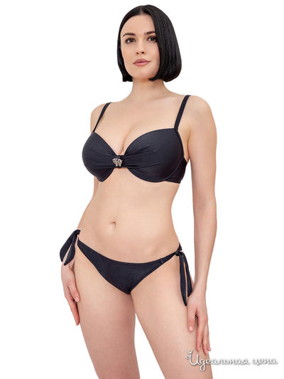 Купальный костюм. Бюстгальтер с формованными чашками. Регулируемые бретели. Металлическая застежка. Декор - брошь. Трусы с низкой посадкой на завязках сбоку.