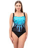 Купальник сплошной. Лиф со встроенными формованными чашками на резинке. По центру вставка из купонного принтованного полотна с драпировкой. Купальник дублирован подкладочным эластичным полотном