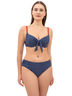 Купальный костюм.Бюстгальтер с формованными чашками. По центру лифа декоративный узел . Трусы слипы с ассиметричной драпировкой в правом боковом шве по переду.Купальный костюм дублирован подкладочным эластичным полотном.