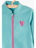 - толстовка пристегивается на молнию, имеет застежку на молнию и вышивку в форме сердца.