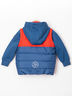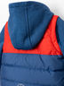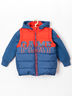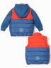 Модель выполнена из плащевой ткани с водоотталкивающей пропиткой; рукава и капюшон выполнены из хлопкового трикотажа; утеплитель синтепон плотностью 140 гр; в полочке, спинке и капюшоне подкладка хлопковый трикотаж, в рукавах полиэстер.