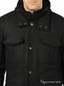 Детали: втачной ворот стойка с застежкой на металлических кнопках, застежка на металлической молнии и на клапане с кнопками, подстежка на молнии с капюшоном на кулиске, рукав длинный посажен на небольшую манжету из основной ткани с хлястиком на кнопке позволяющим обхватить запястье, два накладных кармана с клапаном на кнопке и два нагрудных накладных кармана с клапаном на кнопке.