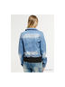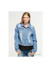 Джинсовая куртка с длинными рукавами и отложным воротником. Модель прямого кроя дополнена застежкой на пуговицы спереди. Отличный вариант на каждый день.