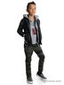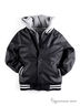 Стильная куртка-бомбер из эко-кожи с капюшоном и эффектом 2 в 1. Воротник "стойка". Модель с длинными рукавами, имеет застежку "молния". Манжеты, ворот и низ куртки оформлены резинкой. По бокам прорезные карманы.