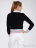 Воротник стойка выполнен из широкой резинки в полоску. Так же оформлены манжеты и низ изделия. Застегивается на молнию. Два прорезных кармана на молнии.