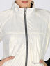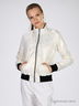 Спортивная куртка невероятного жемчужного цвета со стильным блеском. Воротник стойка. Застегивается на молнию. Манжеты и низ изделия выполнены из широкой трикотажной резинке черного цвета. Два прорезных кармана.