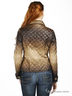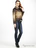 Детали: отложной воротник, застежка на пуговицы, спереди два втачных кармана, изделие украшено прострочкой и принтом "градиент"