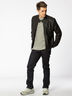 Детали: воротник-стойка, длинный рукав, спереди застежка на молнию и пуговицу