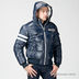 Мужская куртка Bomboogie выполнена из плотного полиуретана с наполнителем из гусиного пуха и пера. Модель прямого фасона застегивается на молнию, имеет воротник-стойку с неотстегивающимся капюшоном. Куртка дополнена карманами снаружи: два с клапанами на кнопках и один на молнии, расположенный на рукаве. На груди и капюшоне куртка украшена белой нашивкой с логотипом бренда.