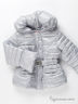 Куртка приталенного силуэта из шелковистой плащевки застегивается на двойную застежку на молнию и клапан с кнопками. Шелковистый подклад, утеплитель синтепон. Оригинальный объемный ворот. Кулиска по талии с вставленным поясом. Два передних кармашка.