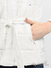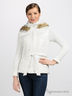 Теплая куртка из непродуваемого и непромокаемого материала на синтепоновой подкладке с вязаными рукавами и капюшоном. Приталенного силуэта. Застегивается на молнию и планку с кнопками. Воротник-стойка. Капюшон с искусственным мехом, не отстегивается. Длинный прямой рукав в рубчик. Четыре кармана на молнии. В шлевки продет пояс. Тонкая шелковистая подкладка.