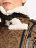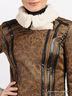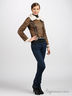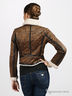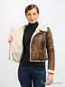 Мягкая укороченная куртка приталенного кроя из плотной, приятной на ощупь ткани. Застегивается на молнию. Отложной воротник с застежкой. Длинный прямой рукав с простроченным подворотом. Два втачных кармана на молнии. Куртка декорирована лентами из искусственной кожи. Мягкая велюровая подкладка.
