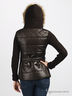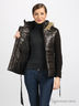 Теплая куртка из непродуваемого и непромокаемого материала на синтепоновой подкладке с вязаными рукавами и капюшоном. Приталенного силуэта. Застегивается на молнию и планку с кнопками. Воротник-стойка. Капюшон с искусственным мехом, не отстегивается. Длинный прямой рукав в рубчик. Четыре кармана на молнии. В шлевки продет пояс. Тонкая шелковистая подкладка.