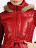 Теплая куртка из непродуваемого и непромокаемого материала на синтепоновой подкладке с вязаными рукавами и капюшоном. Приталенного силуэта. Застегивается на молнию и планку с кнопками. Воротник-стойка. Капюшон с искусственным мехом, не отстегивается. Длинный прямой рукав в рубчик. Четыре кармана на молнии. В шлевки продет пояс. Тонкая шелковистая подкладка.