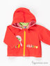 Повседневная куртка для девочки. Капюшон отстегивается от изделия, застежка на молнию, полочка декорирована принтом и фигурной прострочкой.