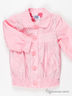 Легкая куртка для девочки, выполнена из плащевой ткани. Изделие с отложным воротником, застежка на пуговицы, по бокам расположены открытые карманы, низ посажен на многорядные резинки.