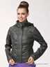 Короткая однотонная кожаная куртка с капюшоном, с длинными рукавами и воротником стойка. Дополнена модель комбинированными трикотажем, застежкой на металлическую молнию. Декорирована фигурными карманами, прострочкой и металлическими заклепками.