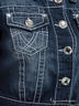 Модная джинсовая куртка с отложным воротником и рукавами 3/4. Спереди удобная застежка на пуговицы. Модель дополнена вместительными карманами. Отличный вариант на каждый день.