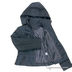 Утепленная куртка для девочки приталенного силуэта с фигурным кроем и декоративной стежкой. На передних половинках изделия - прорезные карманы на металлических молниях. В воротнике-стойке спрятан капюшон.