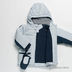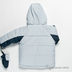 Утепленная куртка прямого кроя с капюшоном застегивается на молнию, липучки и кнопки на полочке по всей длине изделия. Хлопковый подклад. Внутренняя трикотажная манжета-резинка. Два передних кармана. Полочка украшена нашивкой. В комплекте идут варежки с липучкой, которые пристегиваются к внутренней стороне рукавов на резинку с кнопкой.