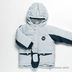Утепленная куртка прямого кроя с капюшоном застегивается на молнию, липучки и кнопки на полочке по всей длине изделия. Хлопковый подклад. Внутренняя трикотажная манжета-резинка. Два передних кармана. Полочка украшена нашивкой. В комплекте идут варежки с липучкой, которые пристегиваются к внутренней стороне рукавов на резинку с кнопкой.