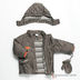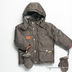 Детали: капюшон пристегнут на кнопки, в край капюшона вставлена резинка, застежка на молнию и кнопки, ветрозащитная планка, два передних кармана, два нагрудных кармана, манжеты - трикотажные резинки, декоративная аппликация, хлопковый подклад, варежки пристегнуты на кнопку