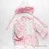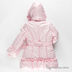 Детали: капюшон отстегивается, в край капюшон вставлена регулирующая лента, застежка на молнию и кнопки, два передних кармана, внутренняя трикотажная манжета, по боковым швам пришиты шлевки, вставлен шелковистый пояс со стразами, куртка украшена оборками и рюшами