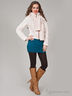 Короткая молодежная стеганая модель с эластичной декоративной резинкой из основной ткани по низу изделия. Оригинальность изделию придает дополнительный съемный капюшон с шарфом, выполненный из вязаного мягкого трикотажа.