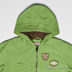 Куртка приятного салатового цвета с капюшоном, который не отстёгивается. Спереди декорирована тремя маленькими апликациями. Имеет два больших передних кармана и один маленький. Манжеты из эластичного материала в тон куртки.