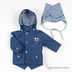 Детали: съёмный капюшон, воротник стойка, флисовый подклад, застежка на молнию, ветрозащитный клапан с застежкой на кнопки, спереди два втачных кармана на клапане с кнопкой, в комплекте шапочка на завязках