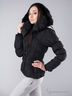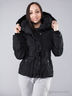 Утепленная куртка с оригинальным воротником. Капюшон оторочен отстегивающимся искусственным мехом. Элегантный пояс на резинке удачно подчеркивает фигуру.