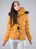 Утепленная куртка с оригинальным воротником. Капюшон оторочен отстегивающимся искусственным мехом. Элегантный пояс на резинке удачно подчеркивает фигуру.
