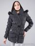 Удлиненная куртка с оригинальным воротником. Капющон отстегивается. Пояс с металлической пряжкой удачно подчеркивает фигуру. Подкладка на меху до талии.