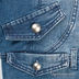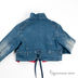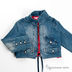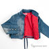 Джинсовая куртка прямого кроя. Отложной воротник. Застежка на металлические крючки и петли. Декор: прострочка на плечах, создающая эффек эполет, имитация карманов на полочке, крупные пластиковые пуговицы, шлевки на поясе и шнуровка сзади. Рукава застегиваются на три пуговицы. Тонкая контрастная подкладка их хлопка красного цвета.